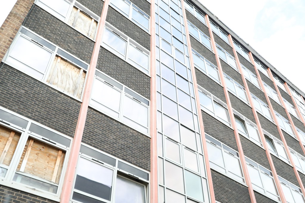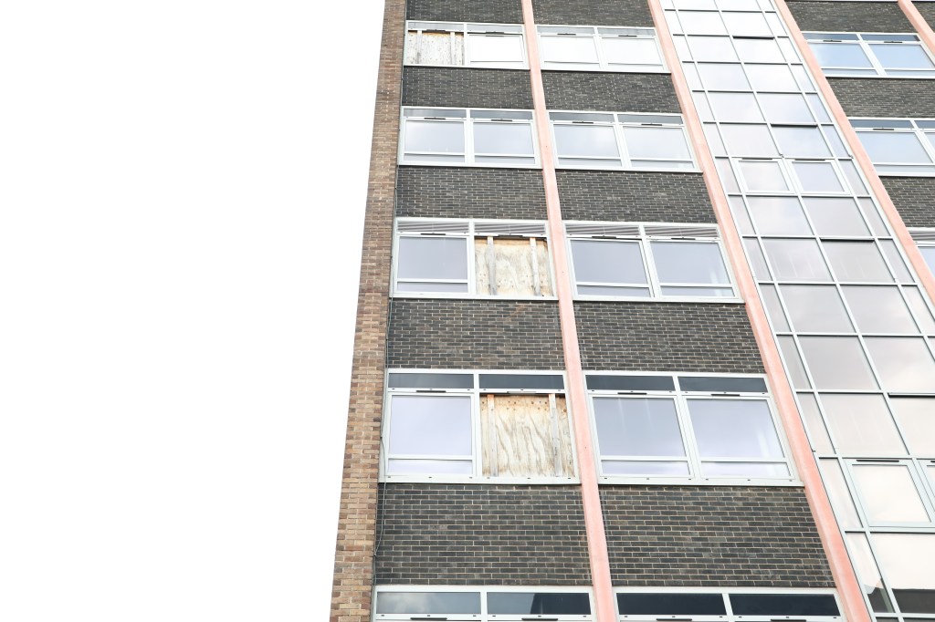 The work for today was inspired by Finn Beales and involves capturing pictures of a structure, an object, or the surrounding area from various perspectives, such as a close-up view. Because of the damage these kinds of buildings have accumulated over time, which indicates that nothing has been done recently to repair the damages to windows that have been broken or boarded up using wooden frames, I specifically chose to capture images of these types of structures. Due to the abandoned and untouched nature of these buildings, it has a dystopian vibe: