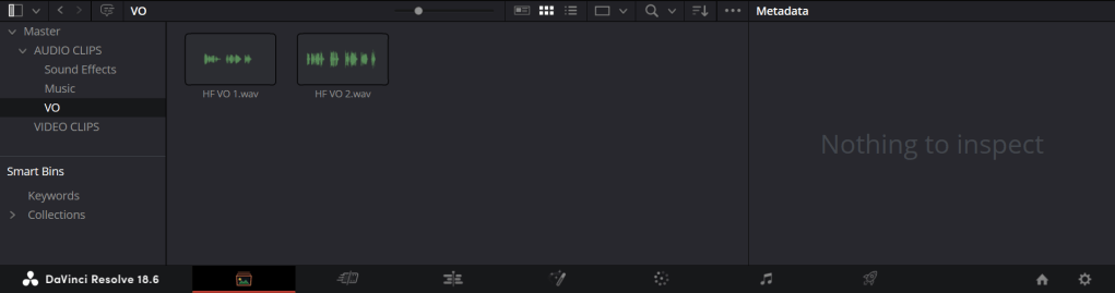 If there are clips that hasn’t already been sorted into the correct folder, I can create a new bin (another name for folder in DaVinci Resolve), so I can sort clips that isn’t already in a folder/bin.