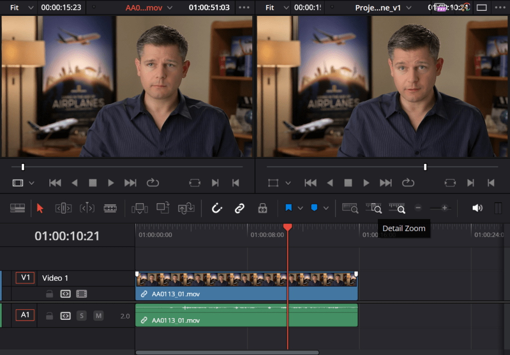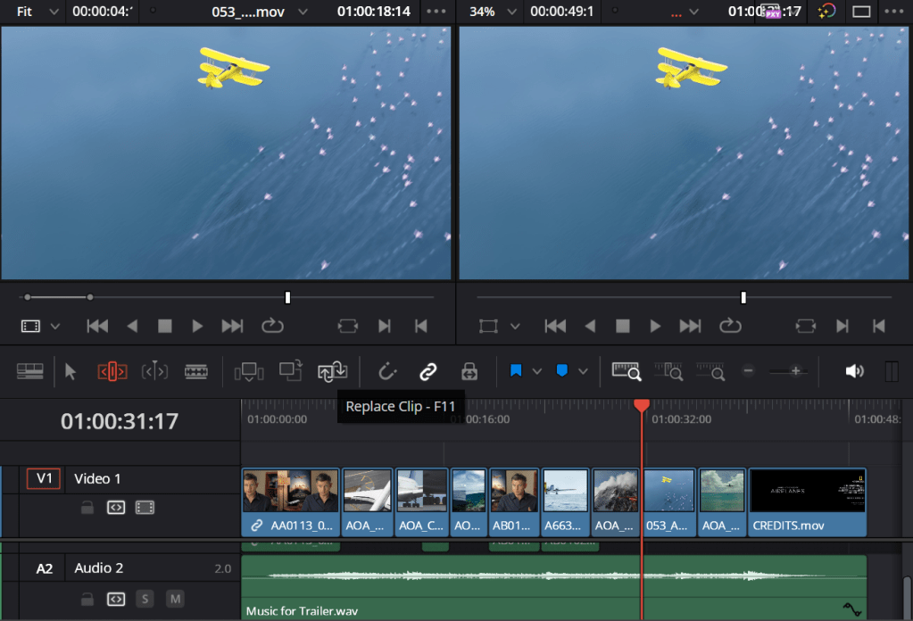 To view the original cut of the video side by side to its edited version, I clicked the F key so I can scroll through the video and replace it using the F11 key or the Replace Clip button.