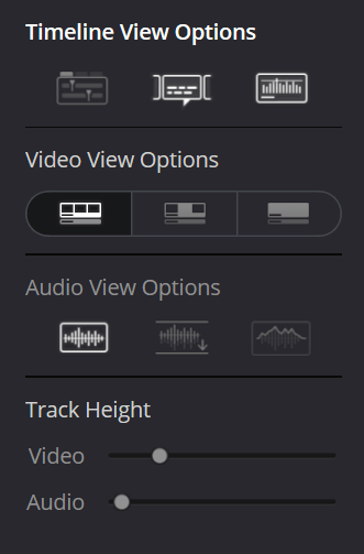 If I wanted to, I can adjust the track height of videos and audio by going into the Timeline View Options.