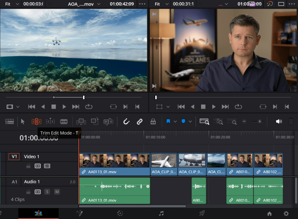 The interview doesn’t start straight away until a few seconds into the timeline, so with the Trim Edit Mode, I can remove part of the video and audio to get a sharper start.