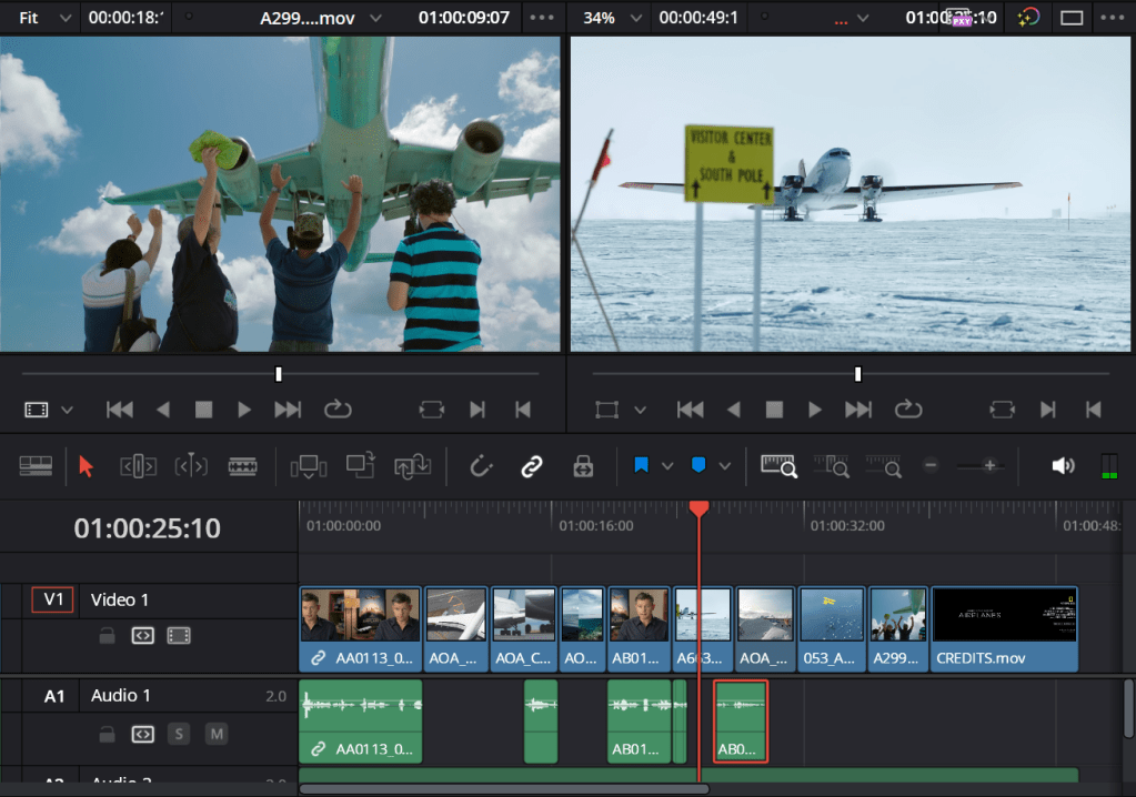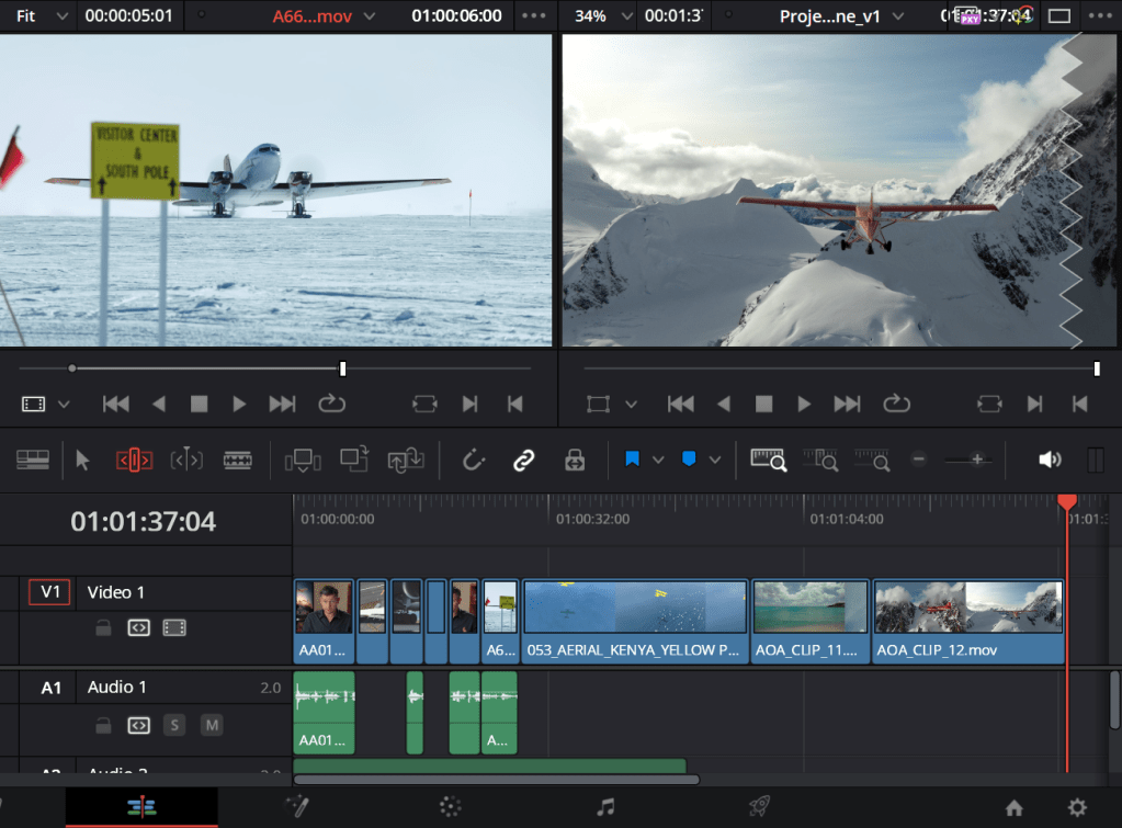 During the half term, I started using DaVinci Resolve to learn about its variety of features that I will need to use, ready for creating the promotional video. After installing the software on my computer, I have looked at tutorials on how to use DaVinci Resolve, starting with an introduction to editing (the images included have been edited to cross out personal information linked to my computer). Here is the process of myself following the tutorial, using the video and audio clips of an interview for Age of Airplanes: