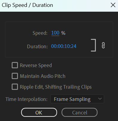 Some footage may be too long as the promotional video is recommended to be at least 1 minute long so I changed the speed/duration by right-clicking on the timeline and selecting “Speed/Duration”. Then I changed the speed to either in between 200% and 400% so I can decrease the duration of some footage to roughly 3 or 5 seconds.