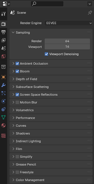 I also experimented with adjusting how rough and metallic an object is as well as enabling screen space reflections, ambient occlusion and bloom to show what objects would look like using the basic render engine named “Eevee”.