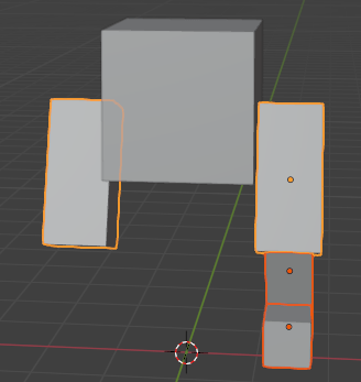 I repeated the process for creating more parts except I don’t need to delete more faces, I reshaped them. This is what they look like attached together (without the head and hands):