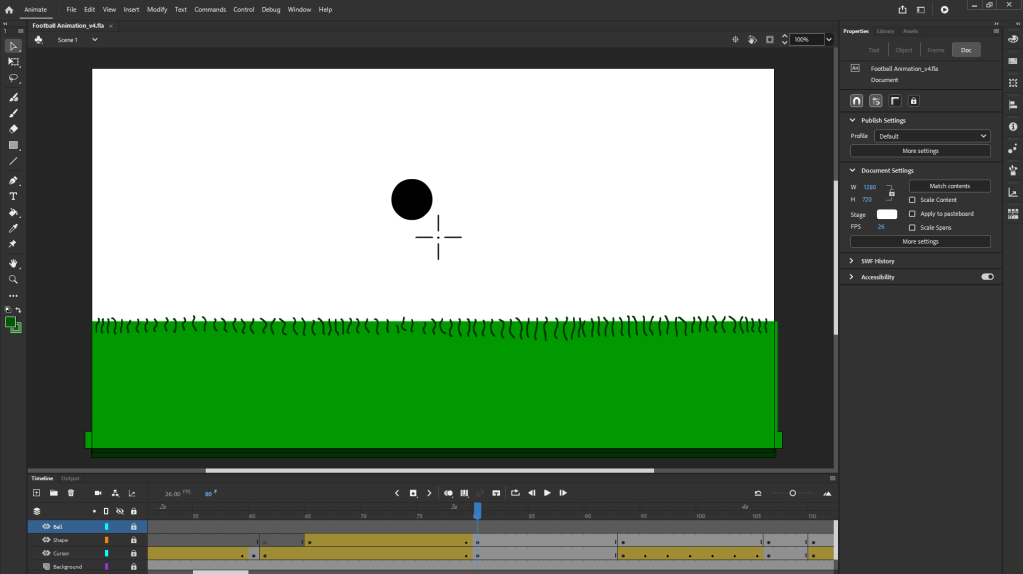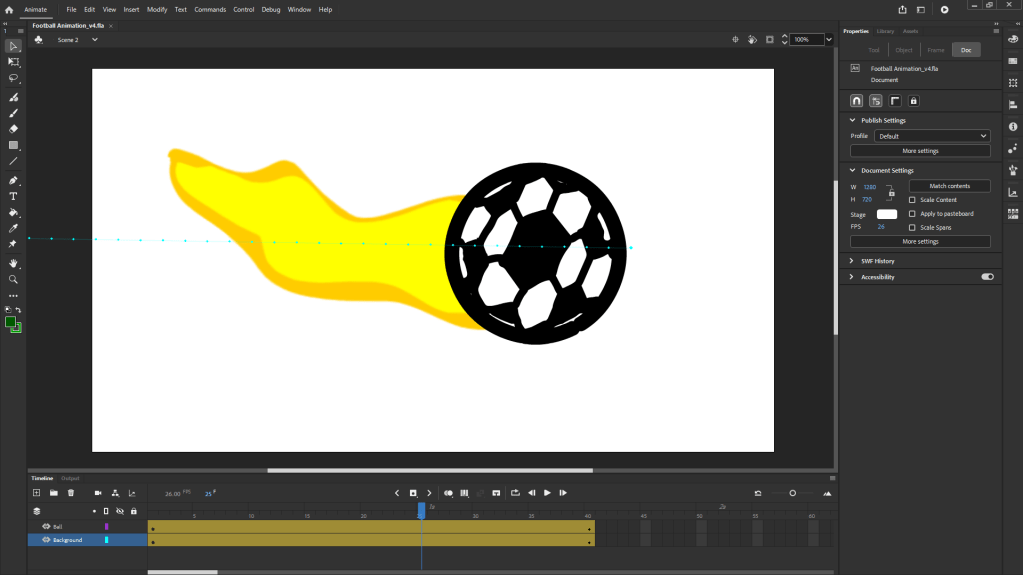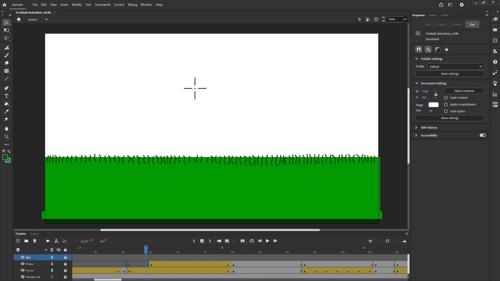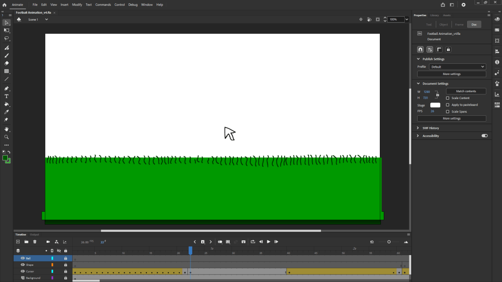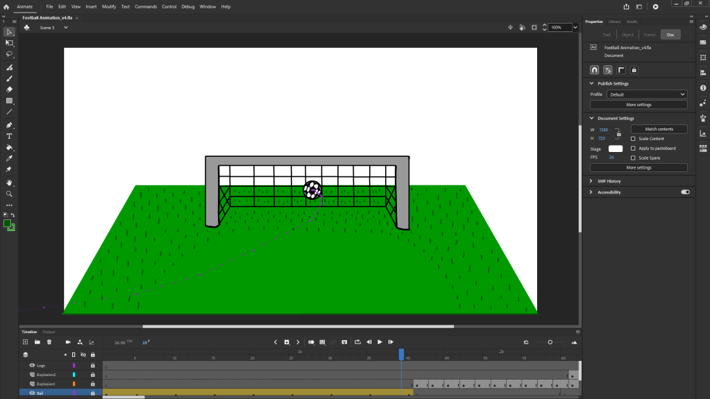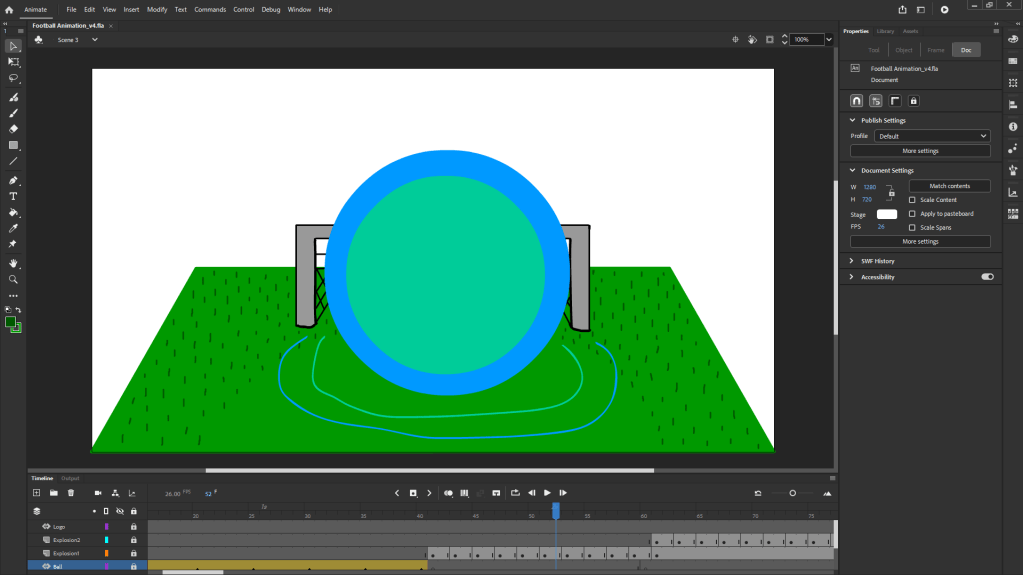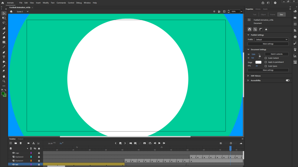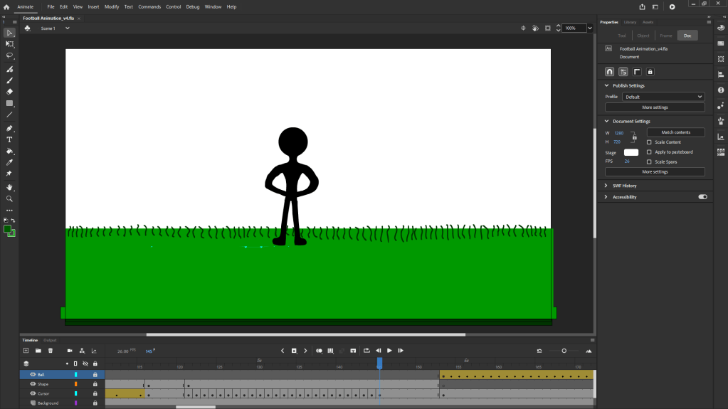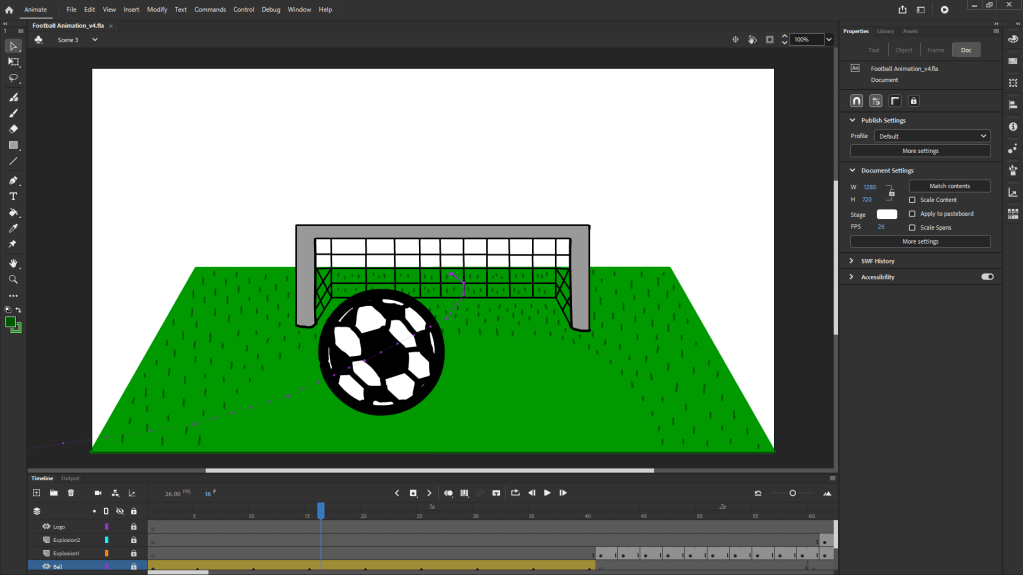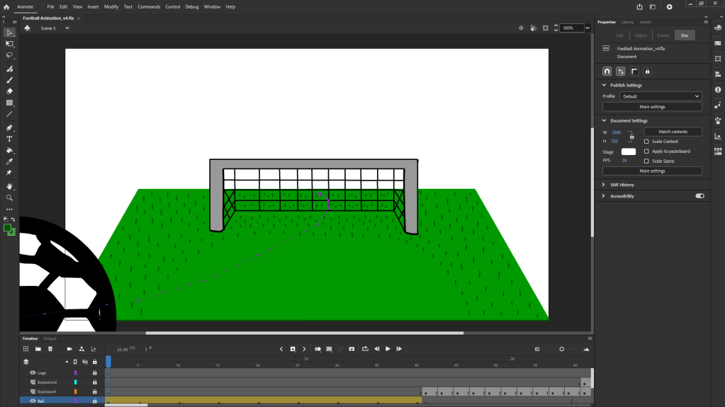 During these two weeks (Easter), I have been working on the early version of an animation that involves the paint bucket tool and the cursor being animated to create a shape which will then transform into a stickman. After, it will kick a ball that rolls into frame towards the camera before making its way into the goal creating an explosion of colours that fit the theme of Stride.