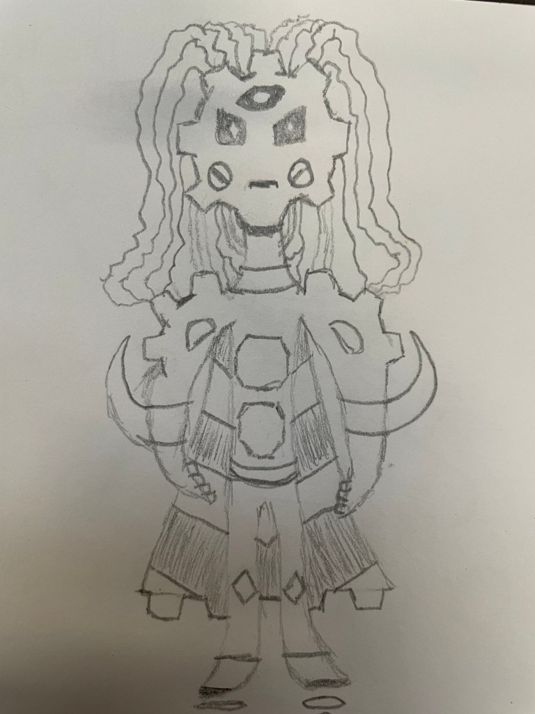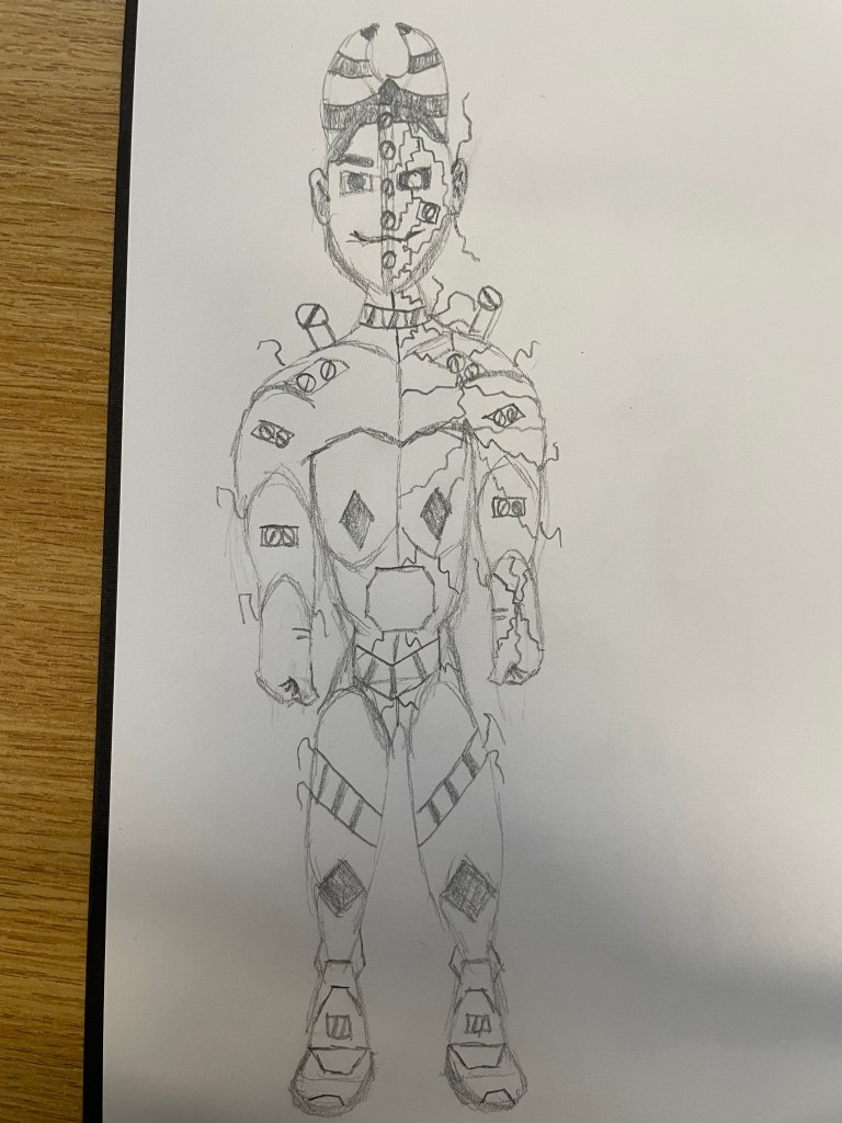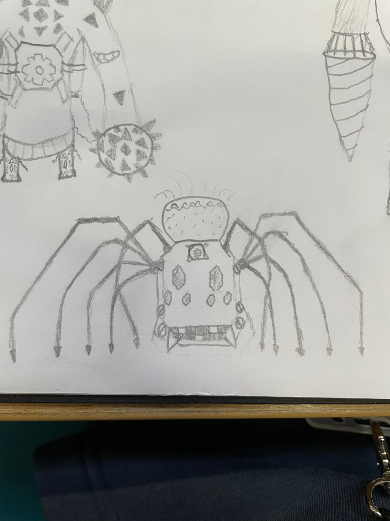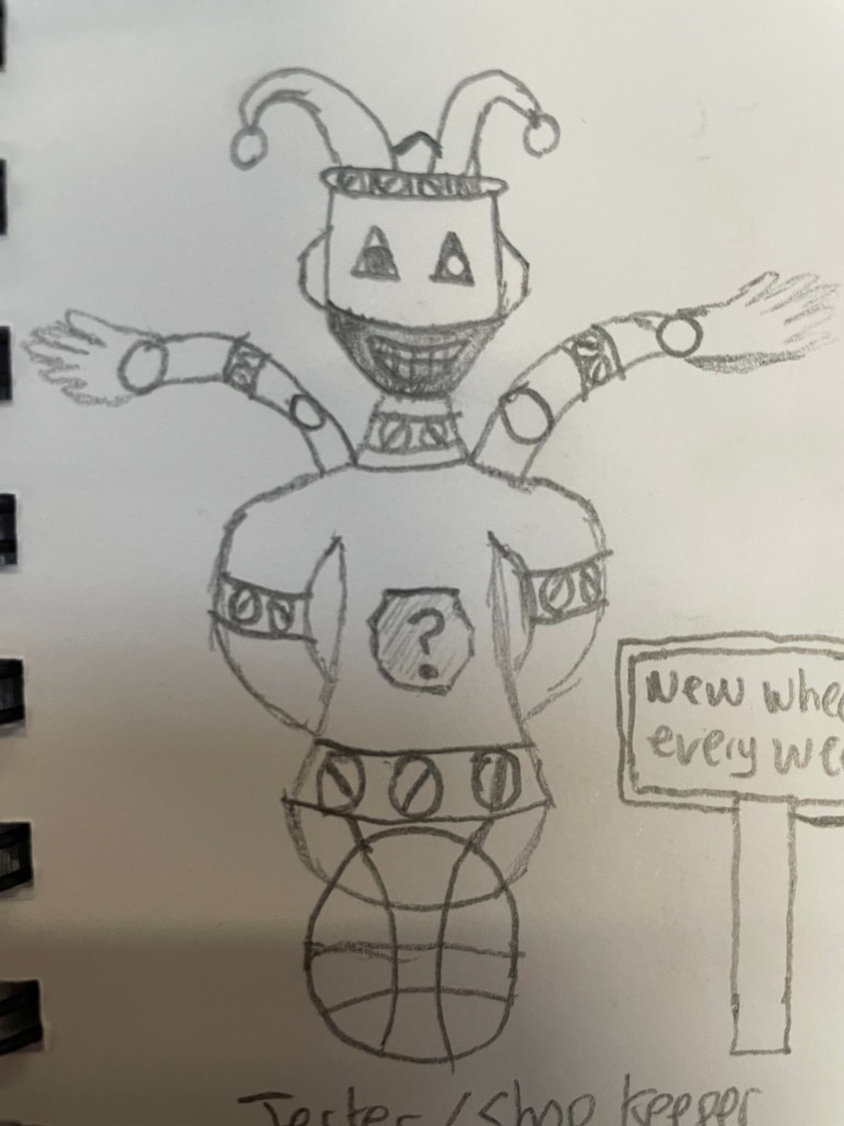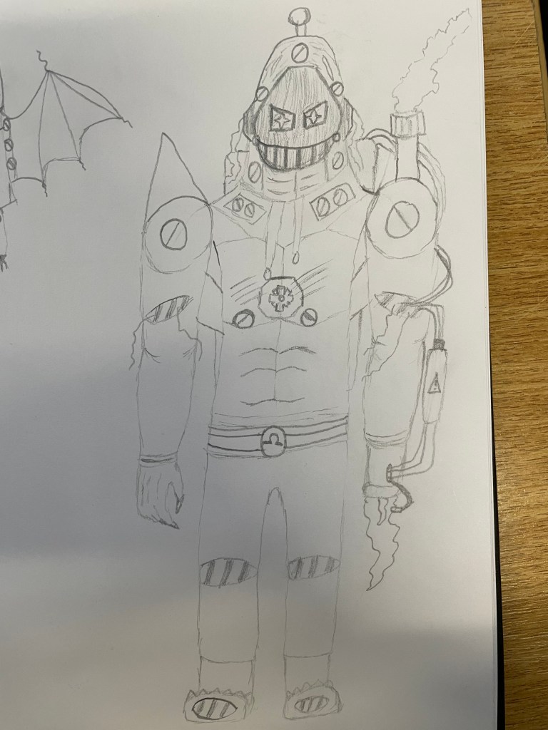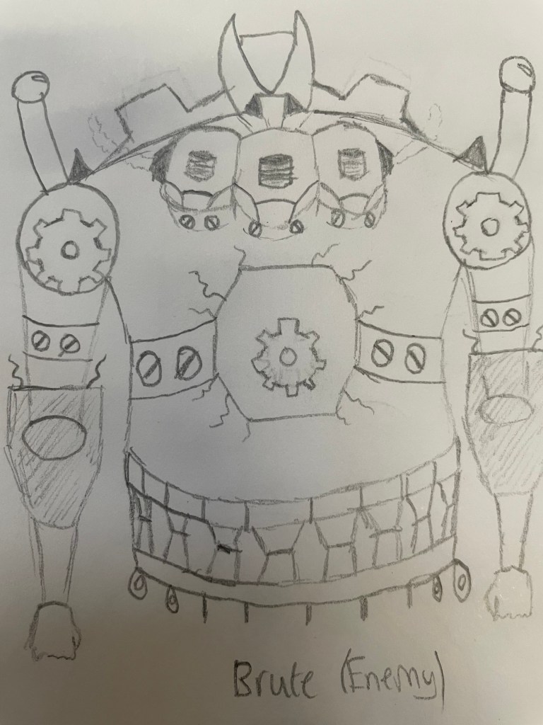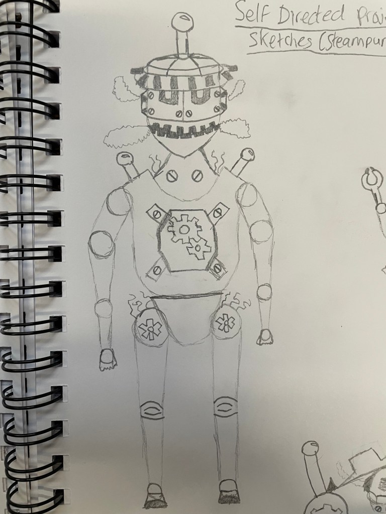 These are the initial concepts for different characters that have metallic bodies and holes within their chest for cog wheels to be placed inside.