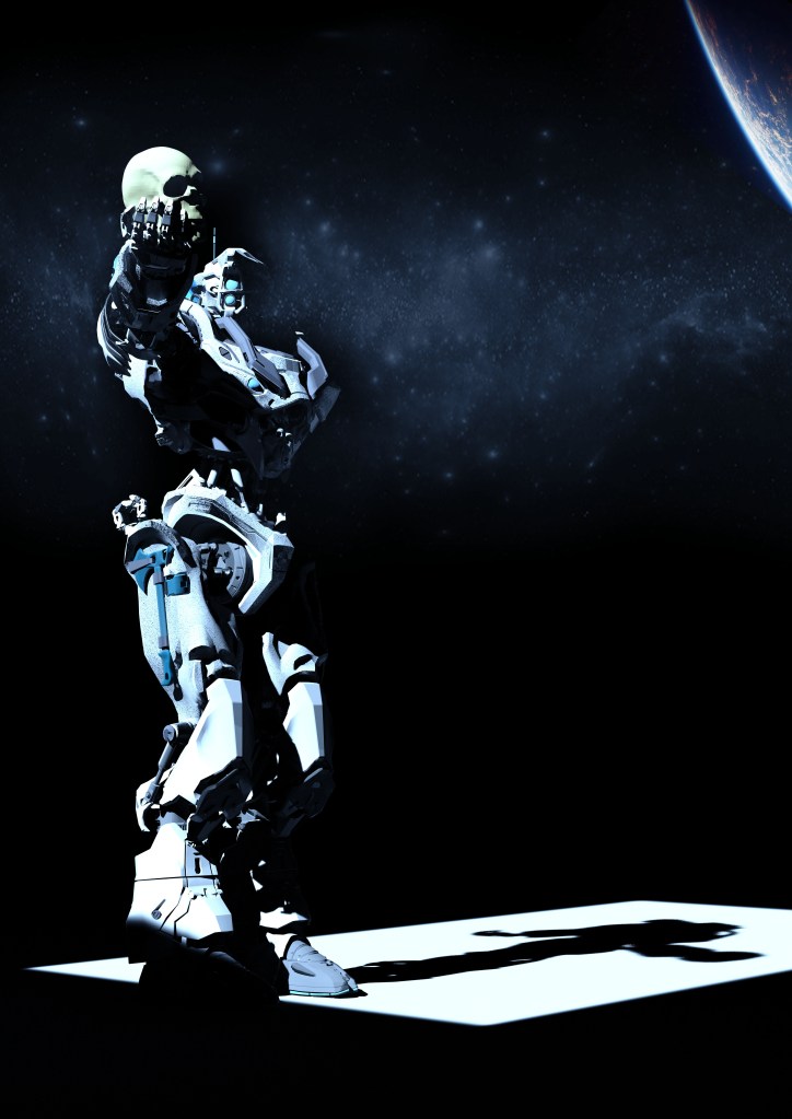 I chose the texturing category because I had limited experience with animation and effects, and it would be easier for me to bring the robot to life by texturing the robot inside 3ds Max’s material editor and Quixel Mixer. I wanted to use colours that would suit the theme of future and artificial intelligence such as white, grey, black, and blue. I had ideas for the robot to hold Earth in its hand with a background but instead changed the object to a skull to fit the theme. I volunteered to create the idea of having the user start in a cylindrical shaped portal room where you can choose different portals to walk into and be teleported into environments where you can see development work and our final products being showcased. As for mine, I have the robot located in the center of my room with work from three modules, showing progress of my skills since the start of the academic year. Unfortunately, my development work did not make it into my gallery and will instead be displayed on the panel to the right.